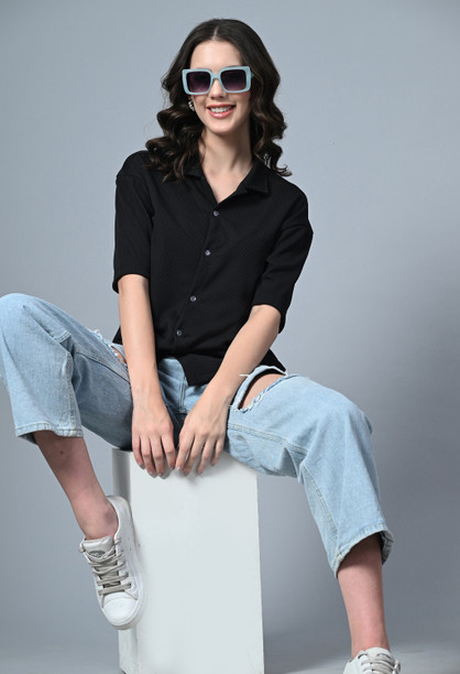 Women Regular Fit Solid Spread Collar Casual Shirt
