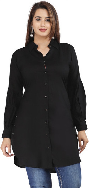 Women Regular Fit Solid Curved Collar Casual Shirt