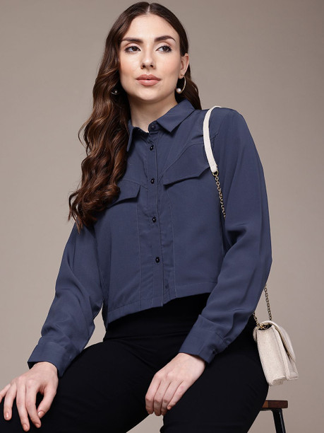 Women Boxy Fit Solid Spread Collar Casual Shirt