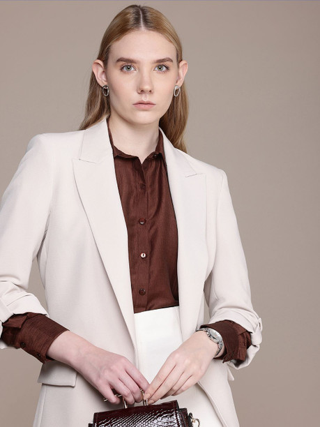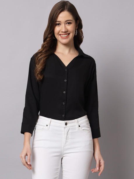 Women Regular Fit Solid Built-up Collar Casual Shirt