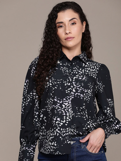 Women Regular Fit Printed Spread Collar Casual Shirt