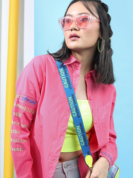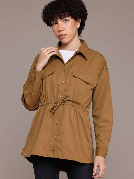 Women Boxy Fit Solid Spread Collar Casual Shirt