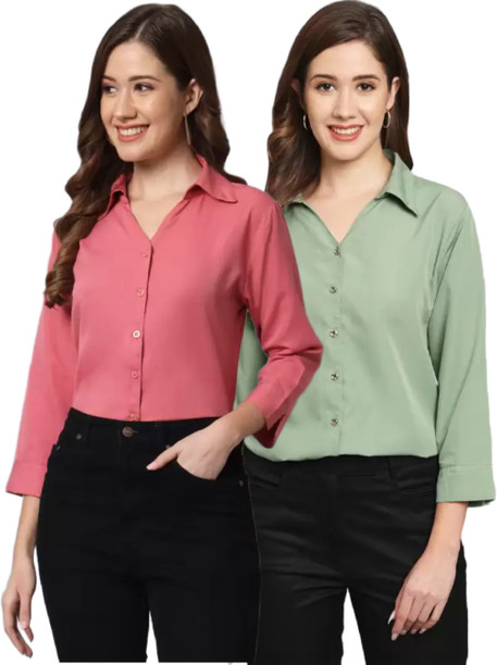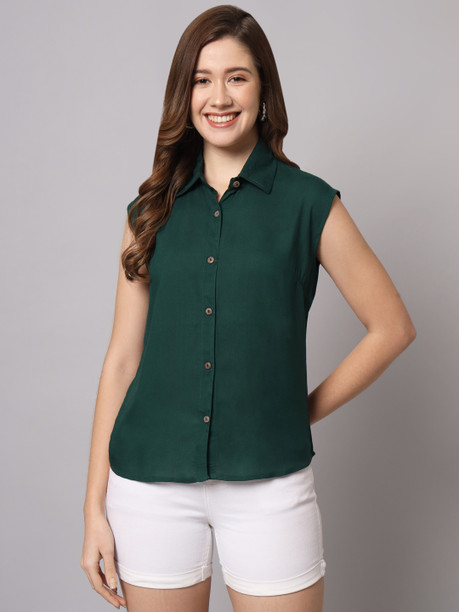 Women Regular Fit Solid Spread Collar Casual Shirt