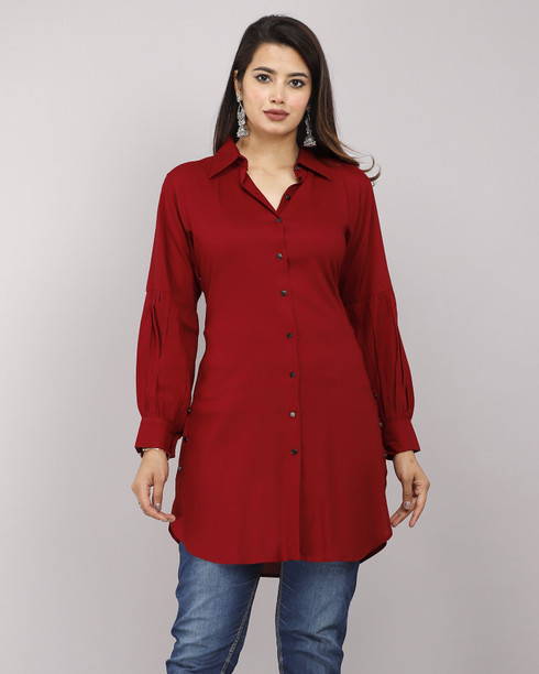Women Regular Fit Solid Mandarin Collar Casual Shirt