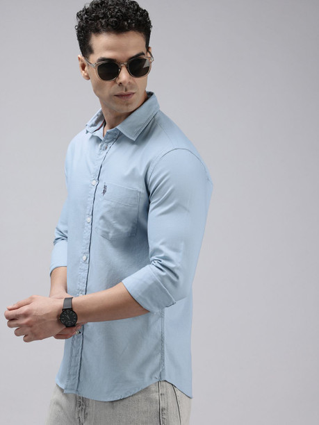 Men Regular Fit Solid Curved Collar Casual Shirt