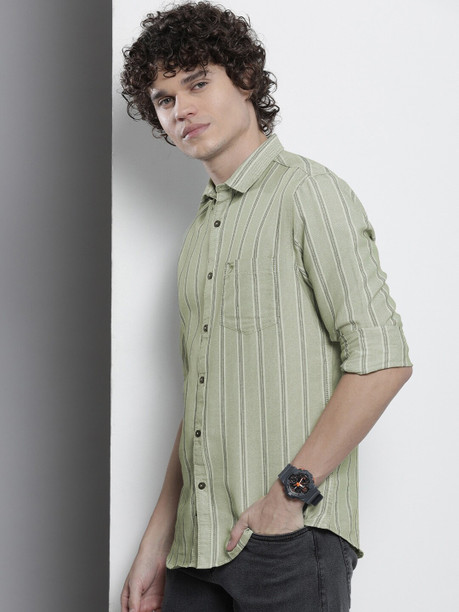 Men Slim Fit Striped Spread Collar Casual Shirt