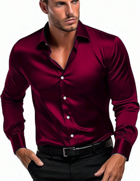 Men Slim Fit Solid Spread Collar Casual Shirt