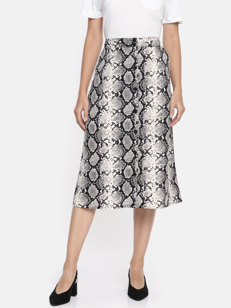 Women Checkered, Solid Pencil Multicolor, Beige Skirt