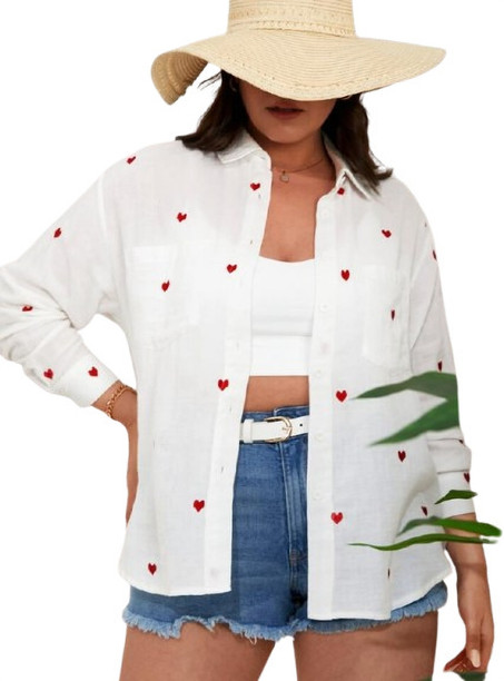 Women Slim Fit Embroidered Spread Collar Casual Shirt