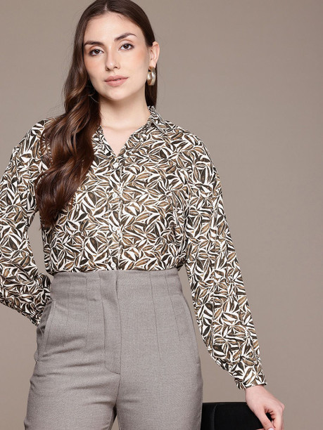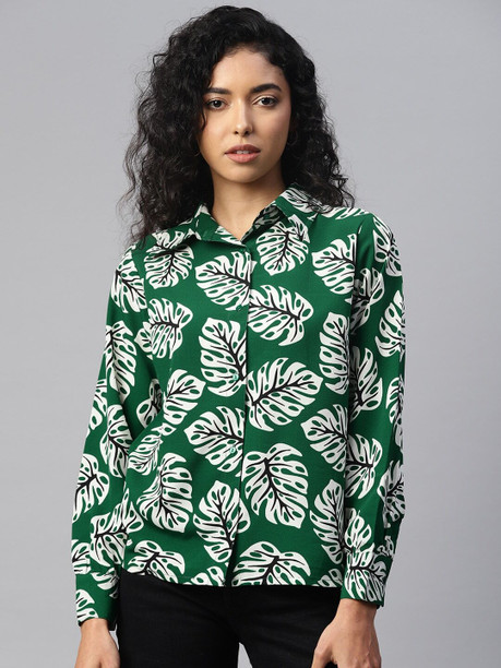 Women Regular Fit Printed Spread Collar Casual Shirt