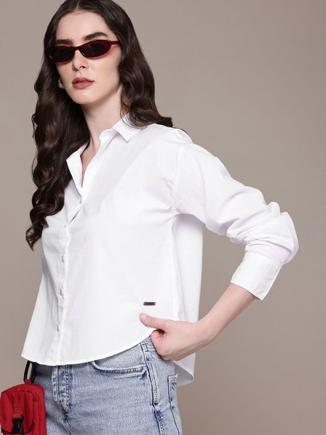 Women Boxy Fit Solid Spread Collar Casual Shirt