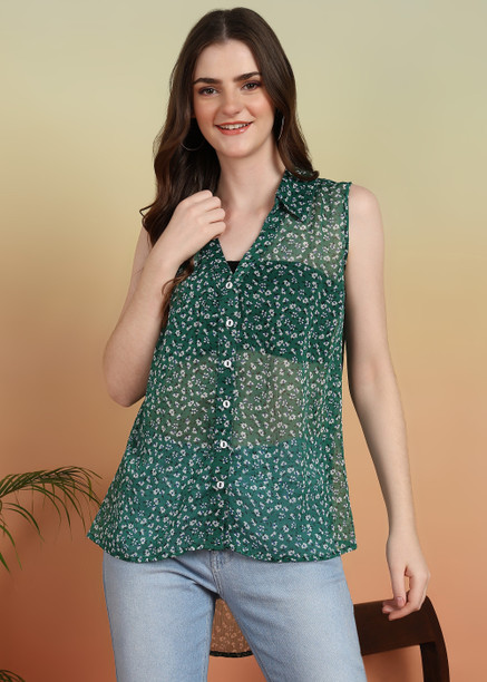 Women Regular Fit Floral Print Spread Collar Casual Shi...