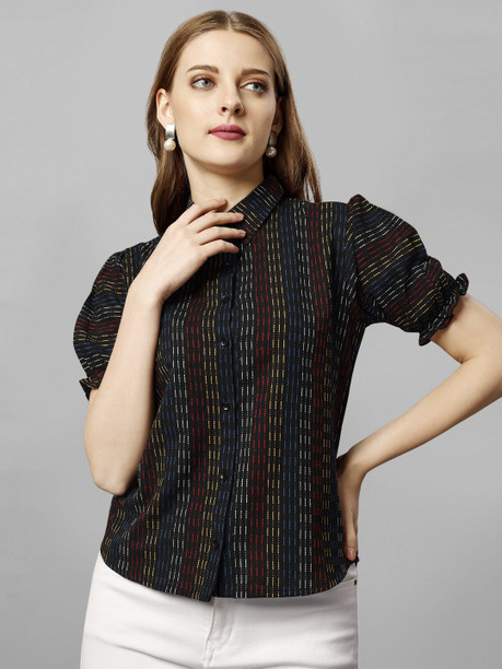 Women Regular Fit Solid Button Down Collar Party Shirt