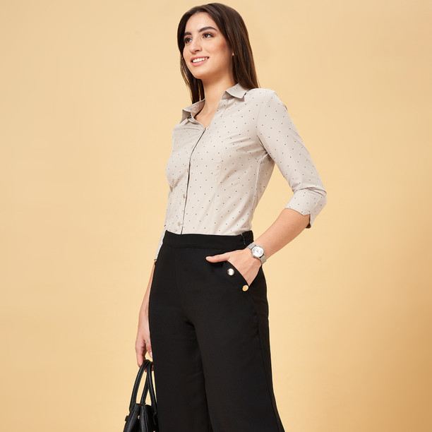 Women Regular Fit Printed Spread Collar Casual Shirt