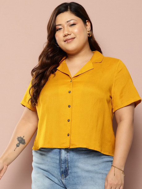 Women Boxy Fit Solid Spread Collar Casual Shirt