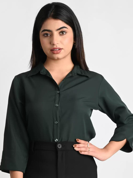 Women Slim Fit Solid Spread Collar Casual Shirt