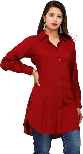 Women Regular Fit Solid Cut Away Collar Casual Shirt