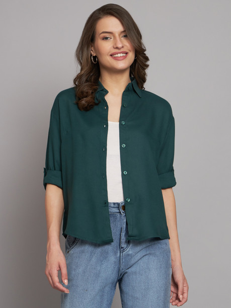 Women Boxy Fit Solid Spread Collar Casual Shirt