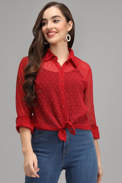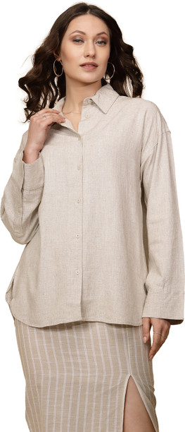 Women Regular Fit Solid Spread Collar Casual Shirt