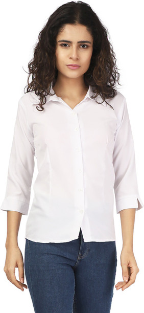 Women Regular Fit Solid Cut Away Collar Formal Shirt