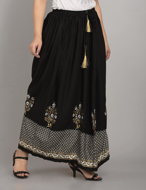 Women Printed A-line Black Skirt