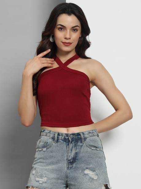 Women Printed Round Neck Cotton Blend Maroon T-Shirt