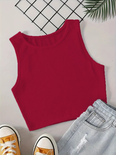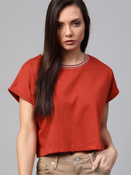 Women Solid Round Neck Pure Cotton Red T-Shirt