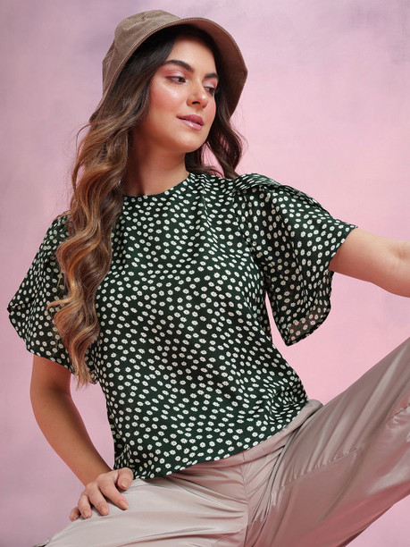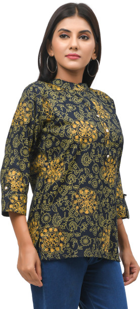 Women Self Design Round Neck Cotton Blend Blue T-Shirt